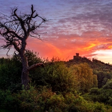 Way, sea, Sunrise, Coast, VEGETATION, Mountains
