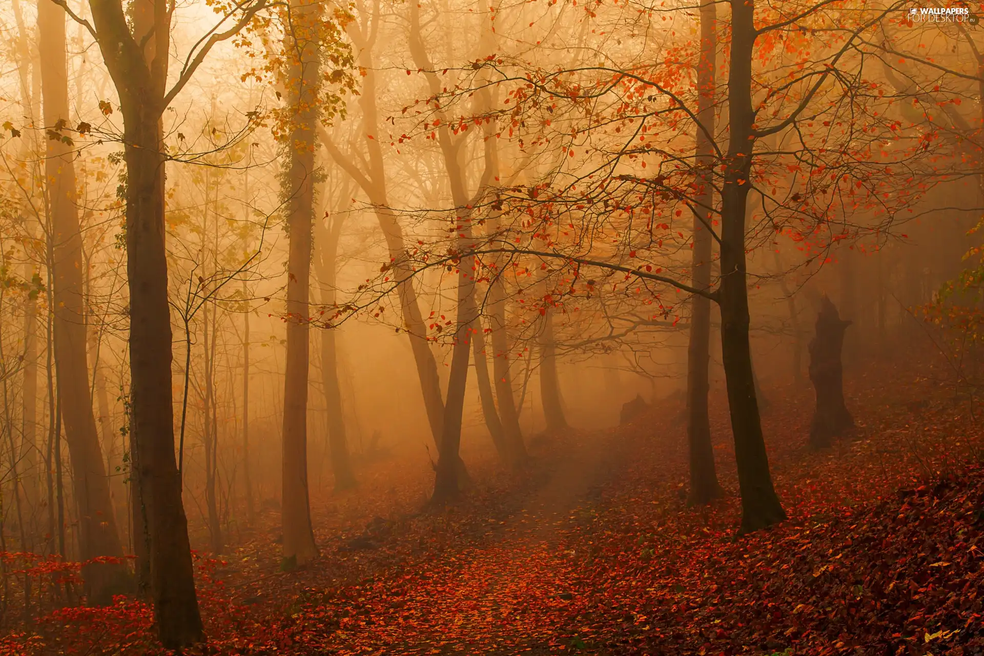 Fog, forest, Path